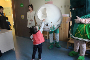 (左“武藏”右“包強”和孩子打招呼) |